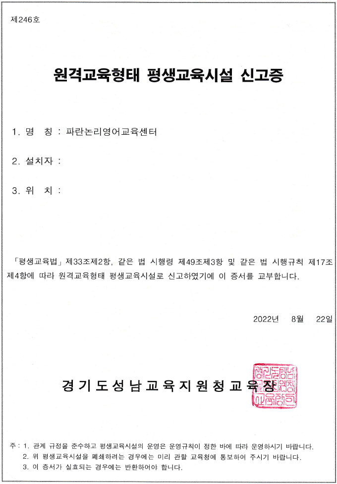 상호 : PELTC, 파란논리영어교육센터 | 대표자 : 김용환 | 사업자 등록번호 전화번호 : 142-08-50760